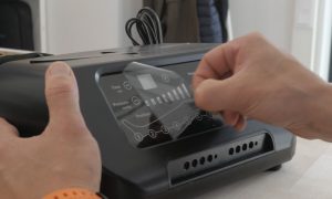 Olethan muistanut kynsiä pois käyttöpaneelia suojaavan kalvon? Kalvo lähtee helpoiten pois, kun aloitat jostain nurkasta. Rohkeasti vaan, joskus nuo ovat melko tiukassakin. Kalvon alta paljastuu tyylikkään musta pinta.